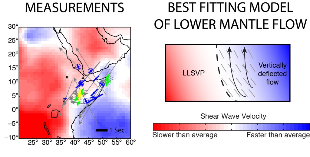 The existence of two large low shear velocity provinces (LLSVPs) in the lower mantle beneath Africa and the Pacific has been well documented through the use of seismic tomography imaging. LLSVPs are thought to represent areas of chemically distinct, higher velocity material, and may act as a source for mantle plumes, however the interpretation of their origin, structure, composition, and dynamics is still poorly understood. Utilizing observations of seismic anisotropy from analysis of shear wave splitting, we found that mantle flow along the edge of the African LLSVP in the lowermost mantle (D”) is best fit by a conceptual model in which the African LLSVP acts as a barrier to flow in the lowermost mantle, resulting in a vertical-to-oblique deflection of mantle material (Ford et al., 2015; Ford and Long, 2015). Rounding out work related to dynamic features in the mantle, Creasy et al. (2016) constrains the direction of mantle flow in the lowermost mantle beneath Australia. Understanding the direction of flow in the lowermost mantle may help us to better understand the extent to which the structure and physical properties of the lowermost mantle informs the evolution of plate tectonics cycles observed at the surface.
