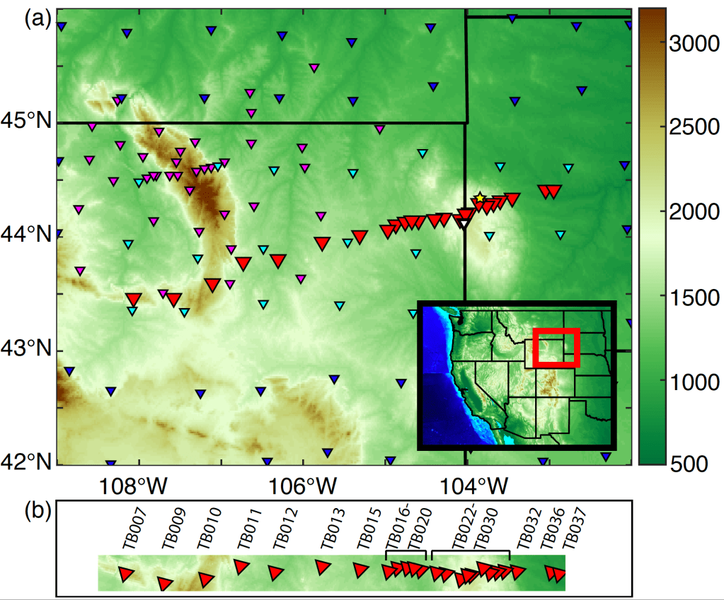 Another new focus for my research program is on the utilization of magnetotelluric (MT) methods. MT methods are similar to seismic methods in the sense that they provide constraints on Earth structure, however they rely on the Earth’s geomagnetic and geoelectric fields. MT and seismic methods sensitivities are different, and when integrated, provide improved constraints on crust and mantle structure (Evans et al., 2019). In 2022 I attended a week-long short course hosted by IRIS on how to incorporate MT methods into my research, something that I am excited to do in the future